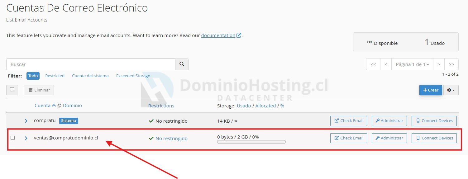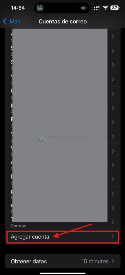 • Haz clic sobre «Agregar cuenta de correo».