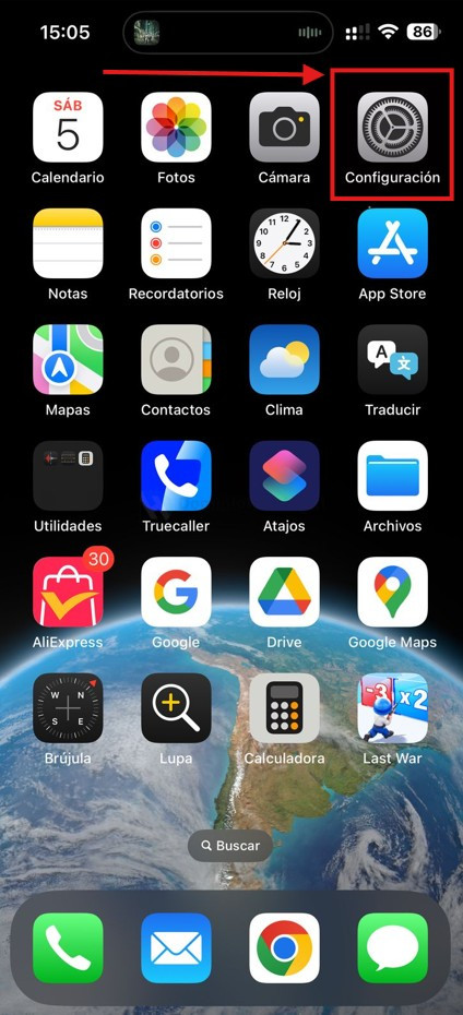 • Busca el ícono de configuración en tu iphone y haz clic sobre él.