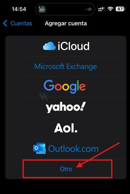 • Elije el tipo de cuenta de correo que vas a configurar. Para correo corporativo debes elegir «Otro».