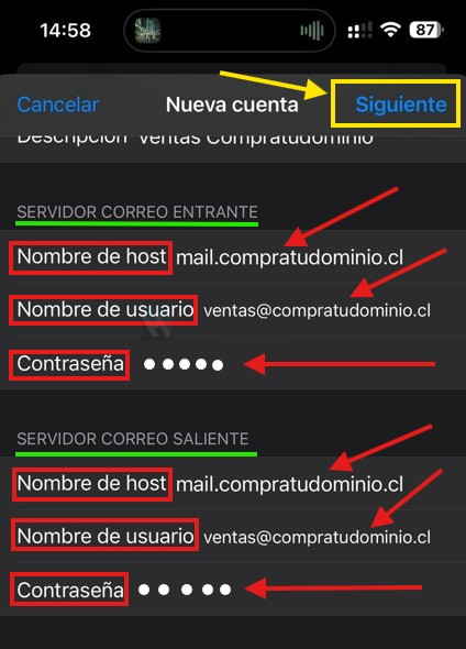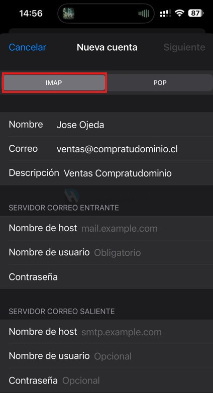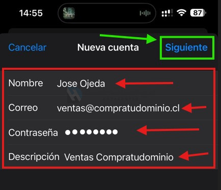 • Descripción: será el nombre que identificará el correo en tu iphone, es solo un nombre interno para ti.
