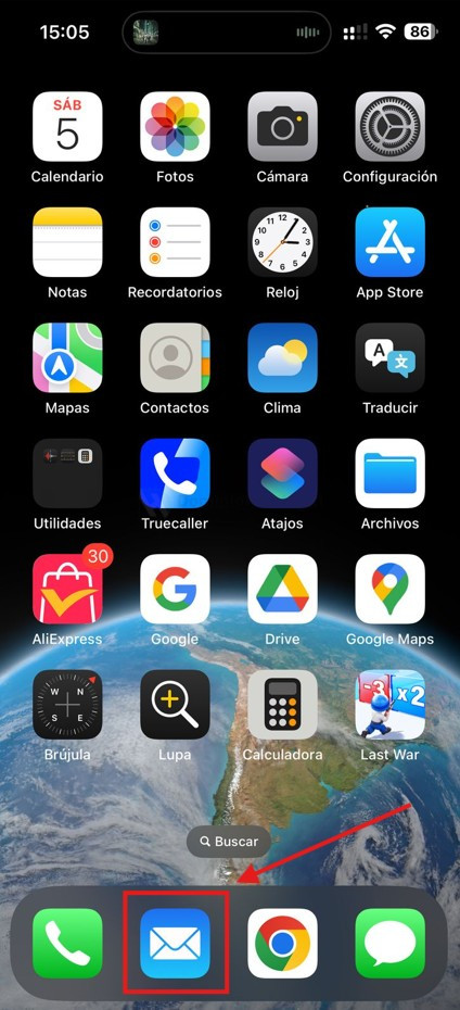 • Dirígete al escritorio de tu iphone y busca el ícono de Correo haciendo clic sobre él, como lo muestra la imagen de abajo.