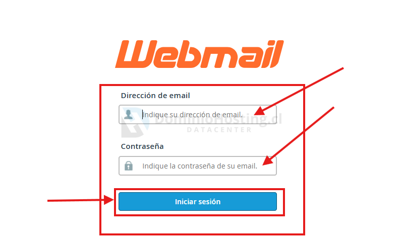 - Introduce la contraseña asociada a ese correo. (si no sabes la contraseña de tu correo, solicítala a la persona de «tu empresa» que administra el hosting (la persona que tiene el acceso al cPanel).